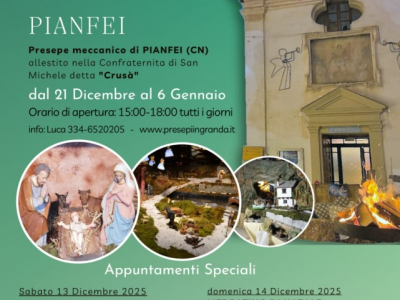 Da sabato 21 dicembre a martedì 6 gennaio, presso la Chiesa della Crusà di Pianfei torna il tradizionale Presepe Meccanico organizzato dagli Amici del Presepe.