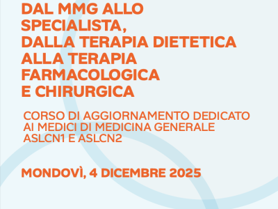 Il 4 Dicembre 2025 si terrà tra le 18:00 e le 22:00 la conferenza "La malattia obesità: dal MMG allo specialista, dalla terapia dietetica alla terapia farmacologica e chirurgica".