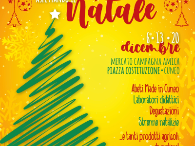 Sabato 6, 13 e 20 dicembre torna il mercato di Campagna Amica, in piazza Costituzione a Cuneo. Abeti Made in Cuneo, laboratori didattici, ma anche degustazioni e tanti prodotti agricoli da assaporare.