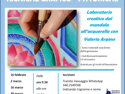 L’Associazione Santuario di Monserrato ODV propone un nuovo percorso dedicato all’espressione artistica e alla creatività: il Laboratorio creativo tecnico grafico di pittura “Dal mandala all’acquerello”, condotto da Valeria Arpino, nelle mattinate del 16 febbraio, 2, 16 e 30 marzo, con inizio all