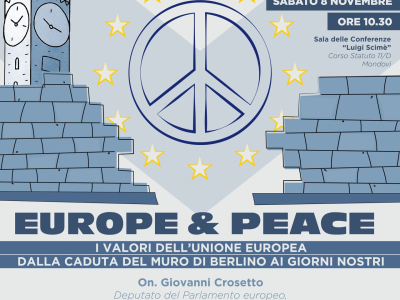 Sabato 8 novembre alle ore 10.30 la Sala delle Conferenze “Luigi Scimé” ospità il convegno “Europe & Peace. I valori dell’Unione Europea dalla caduta del Muro di Berlino ai giorni nostri” al quale prenderanno parte l’on. Giovanni Crosetto, il dott.