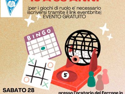 Un nuovo appuntamento di “Mettiamoci in gioco” è in arrivo sabato 28 febbraio 2026 a partire dalle ore 20 presso i locali dell’oratorio della Parrocchia di Santa Maria Maggiore a Mondovì Borgo Ferrone in Via San Bernolfo n.16.Sarà possibile prendere parte ai tavoli dei giochi di