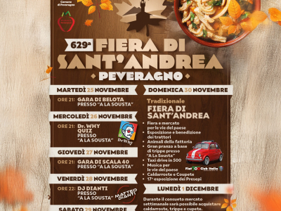 Il Centro Polifunzionale A la sousta ospita una settimana di eventi dal 25/11 al 1 dicembre a Peveragno presso la tradizionale Fiera di S.Andrea che da ormai 629 anni è diventata appuntamento ineludibile che nasce storicamente come ultima occasione di incontro e di commercio per