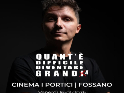 Venerdì 16 gennaio alle ore 21.00, sul palco del Cinema Teatro I Portici a Fossano, LUCA SBRAB con lo spettacolo “QUANT'È DIFFICILE DIVENTARE GRANDI”. Ingresso unico a 8€ con scelta del posto in sala.