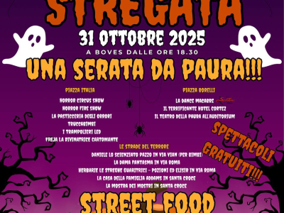 Boves Stregata. Un evento imperdibile per grandi e piccini che potranno trascorre una serata da paura tra giochi, spettacoli mozzafiato, truccabimbi, cartomanti e tante altre attrazioni gratuite in programma dalle ore 18.30 del 31 ottobre. In caso di maltempo l'e