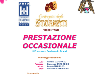 Domenica 14 dicembre, alle ore 17 presso il Teatro Toselli di Cuneo la “Compagnia degli Stornati” in collaborazione con l’ABIO di Cuneo ODV presenta la commedia brillante in due atti “Prestazione occasionale” di Francesco Brandi.