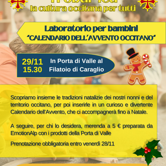 Ritorna la rassegna “Trobar Leu – La Cultura Occitana per tutti” organizzata dalla Cooperativa EmotionAlp in Porta di Valle della Valle Grana. Gli appuntamenti della rassegna saranno distribuiti tra novembre (dal 15) e dicembre, cinque in totale, tra lezioni, concerto, presentazioni, proiezioni e laboratori.