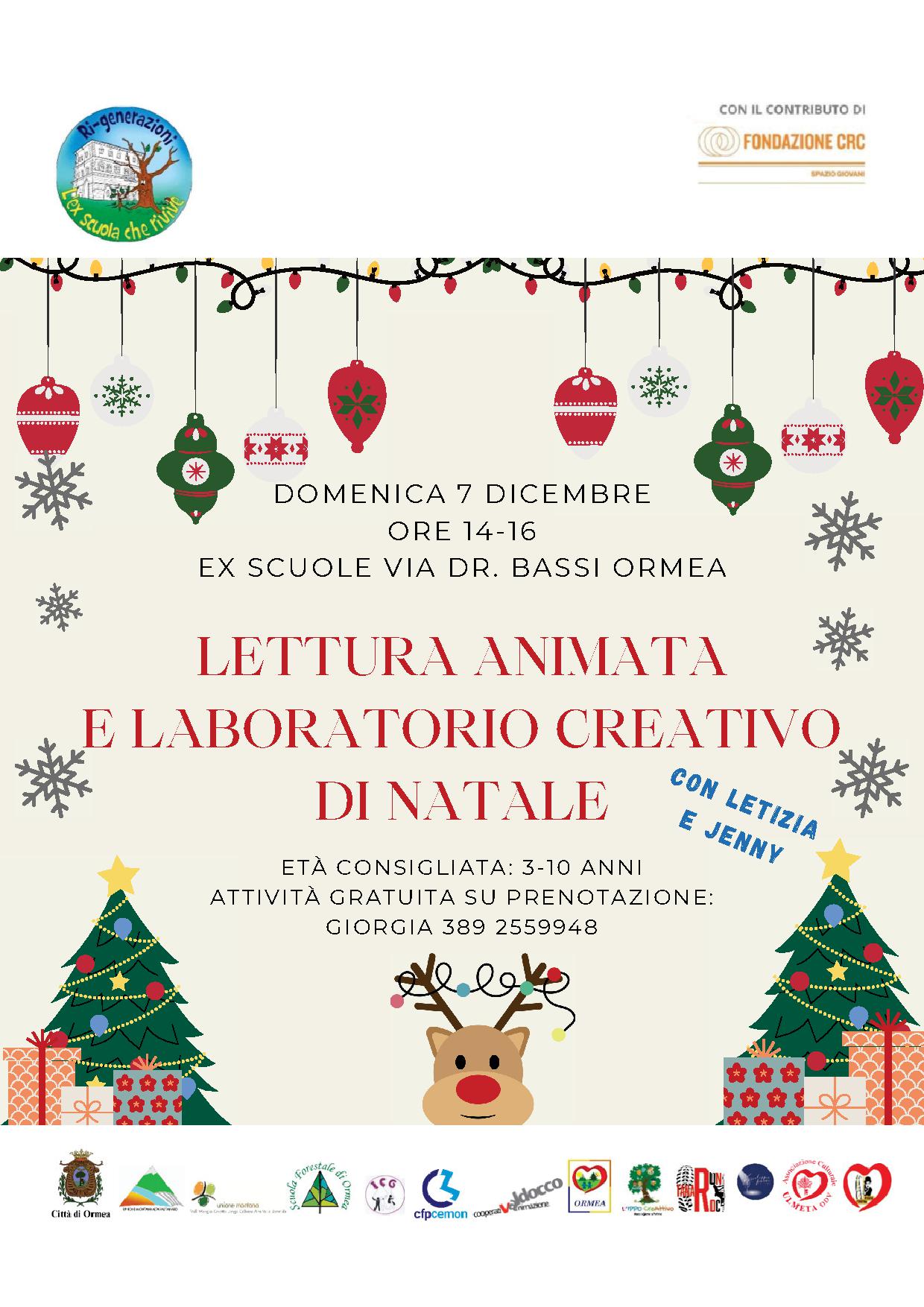 Domenica 7 dicembre, dalle ore 14 alle 16 , presso la Sede delle Ex-Scuole in Via Dr. Bassi 31, i bambini dai 3 ai 10 anni potranno partecipare al Laboratorio Creativo di Natale con Lettura Animata, in compagnia di Letizia e Jenny.