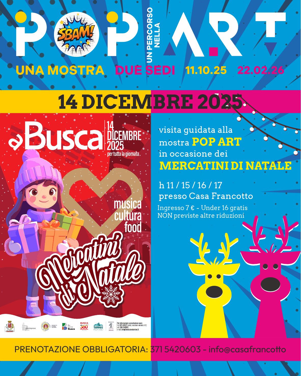 Casa Francotto a Busca ospiterà, dall’11 ottobre 2025 al 22 febbraio 2026, la mostra "SBAM! Un percorso nella Pop Art", che celebra il movimento della Pop Art attraverso le opere di artisti come Warhol, Rauschenberg, Lichtenstein, Dine, Indiana, Schifano, Festa, Angeli, Baj, Nespolo, Arman e Rotella. La mostra propone un viaggio vibrante attraverso la Pop Art.