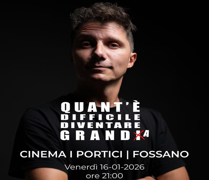 Venerdì 16 gennaio alle ore 21.00, sul palco del Cinema Teatro I Portici a Fossano, LUCA SBRAB con lo spettacolo “QUANT'È DIFFICILE DIVENTARE GRANDI”. Ingresso unico a 8€ con scelta del posto in sala.