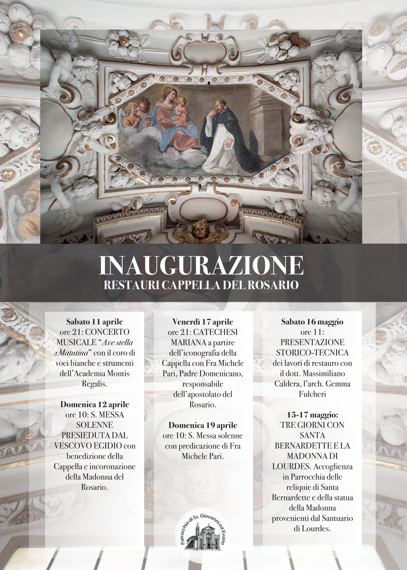 In occasione dell'inaugurazione della cappella del Rosario della parrocchiale di Carassone dall'11 aprile al 17 maggio sono previste numerose iniziative, che culmineranno nell'arrivo di Reliquie di Santa Bernadette, dal 15 al 17 maggio 2026.