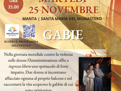 Nell'ambito della Giornata Internazionale per l'eliminazione della violenza contro le donne, il Comune di Mondovì e la Consulta Comunale Femminile con Associazione Culturale Cattleya propongono tre momenti aperti alla cittadinanza per riflettere e agire contro la violenza di gene