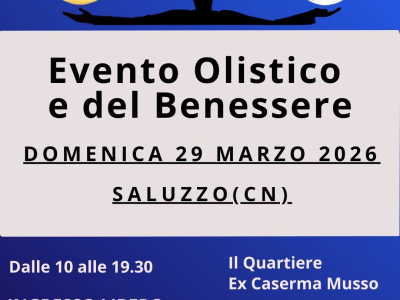 Appuntamento aperti a tutti con l'"EVENTO OLISTICO E BENESSERE A SALUZZO", domenica 29 marzo 2026. Ingresso Gratuito presso i Saloni interni dell’ex Caserma Mario Musso - Il Quartiere piazza Montebello 1.