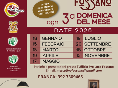 Domenica 17 maggio si tiene il Mercatino dell'Antiquariato e del Collezionismo in Via Roma a Fossano, dal mattino.